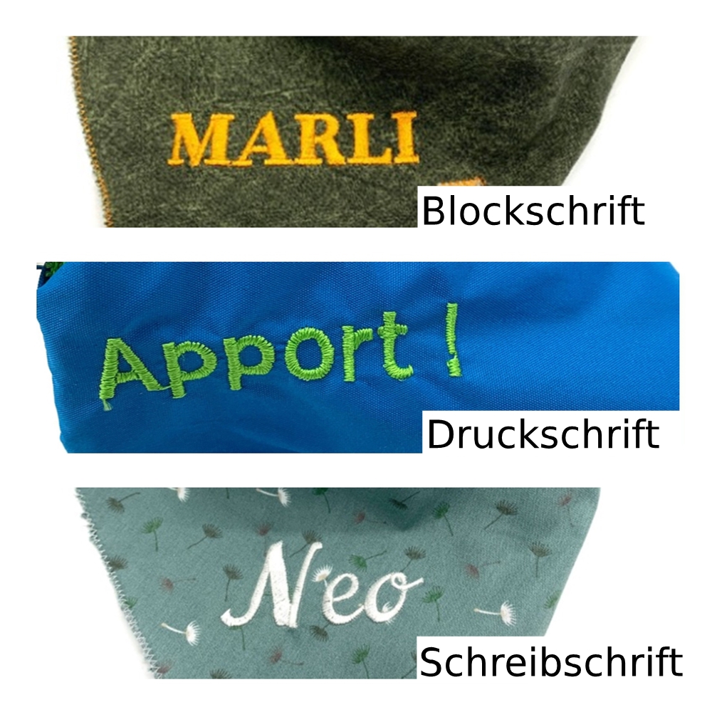 Und wenn du magst, dann gibt es auch weitere passende Accessoire dazu, wie Halsband, Tuch, oder Kotbeutelspender. Alles aus dem selben Stoff.