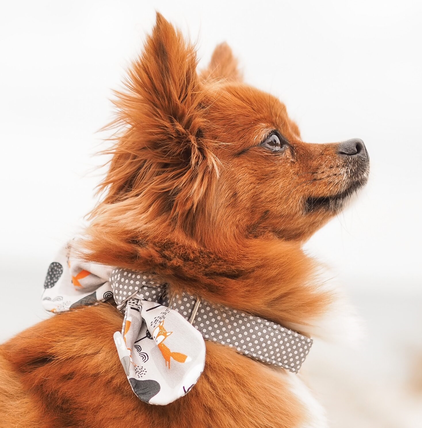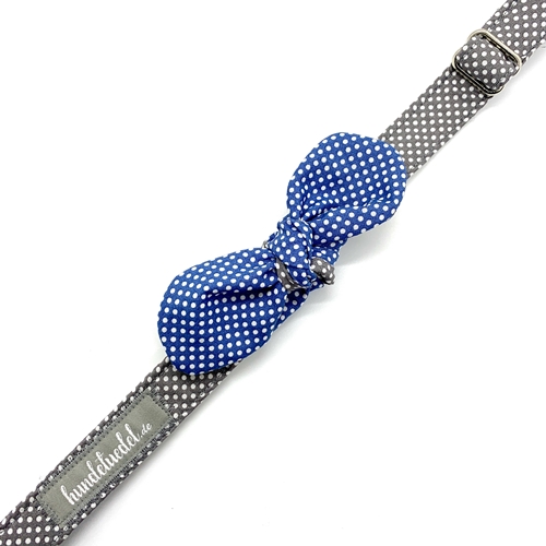 Du magst es gerne außergewöhnlich? Dann dürfte diese Kombination etwas für dich sein. Zum einen ein Halsband, welches du wahlweise auch besticken lassen kannst, zum anderen der sogenannte Tuedelknoten. Alleine durch die Stoffauswahl des Knotens setzt du ein Highlight. Ein besonderes Accessoire für kleine und mittelgroße Hunde. Bestellanleitung findest du unten.